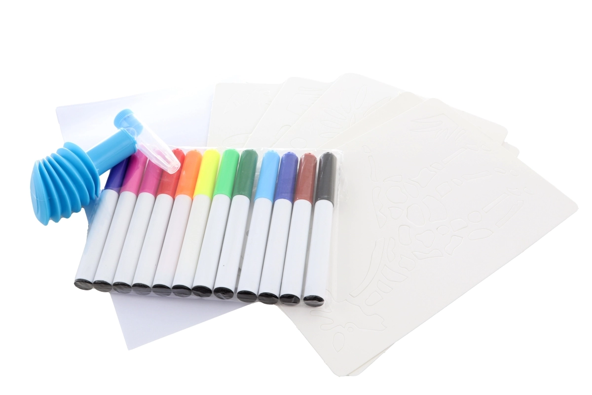 Im Lieferumfang ist alles enthalten, was Kinder zum Gestalten brauchen: Schablonen mit Tiermotiven, glatte Papiere und 12 leuchtende Farben. Diese Aktivität fördert Feinmotorik, Kreativität und Konzentration – und macht dabei Spaß und ist sicher.