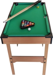 Kompakter Kinder-Billardtisch in hochwertiger Holz-Ausführung bietet großartigen Spaß für kleine und große Spieler. Im Lieferumfang enthalten sind 2 Queues, 16 Billardkugeln und komplettes Zubehör. Dank seiner Abmessungen ist er ideal für das Kinderzimmer und zum ersten Kennenlernen der Spielregeln.
