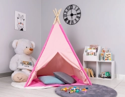 Tipi-Zelt mit einer Größe von ca. 120 x 120 x 150 cm. Das Zelt kann zu Hause im Kinderzimmer, aber auch im Sommer draußen im Garten verwendet werden. Beim Spielen und Verstecken haben Kinder jede Menge Spaß. Packmaß ca. 10 x 10 x 90 cm. Alter 3+ Farbe: rosa/blau