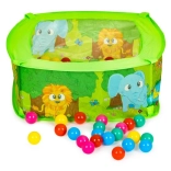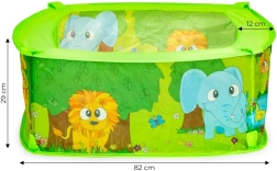 Laufstall mit Boden und 50 Kugeln – nicht für Wasser geeignet, Maße ca. 75 cm x 75 cm x 30 cm. Im Lieferumfang sind 50 Kugeln enthalten. Der Pool kann zu Hause im Kinderzimmer oder im Sommer auch draußen im Garten verwendet werden. Beim Spielen haben die Kinder viel Spaß. Alter 6M+