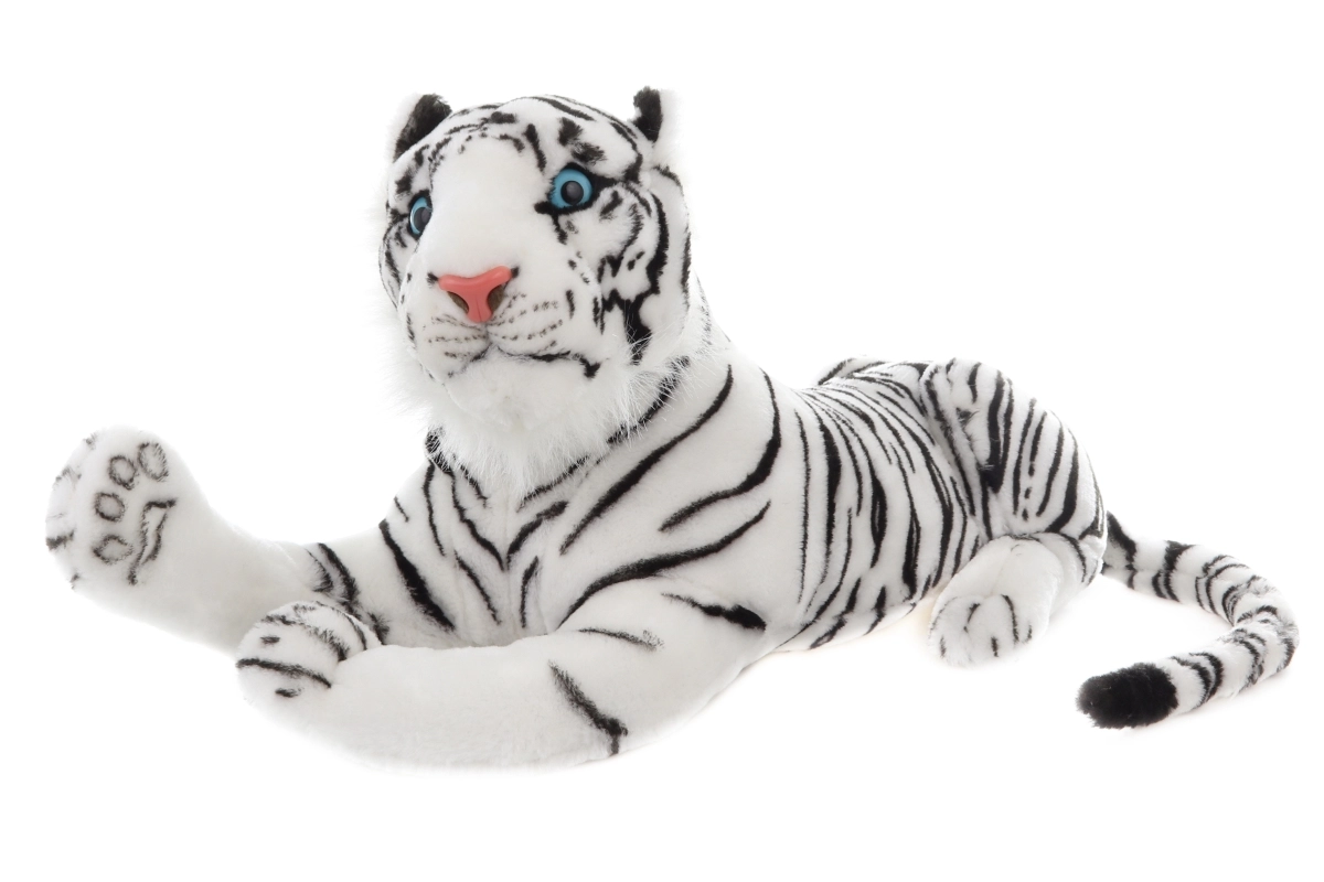 Ein niedlicher weißer Plüschtiger mit einer Länge von 55 cm ist der ideale Begleiter zum Kuscheln und Spielen. Er ist weich, anschmiegsam und geeignet bereits ab Alter 0+. Ein tolles Geschenk für Kinder, die Tiere und sichere Spielzeuge lieben.