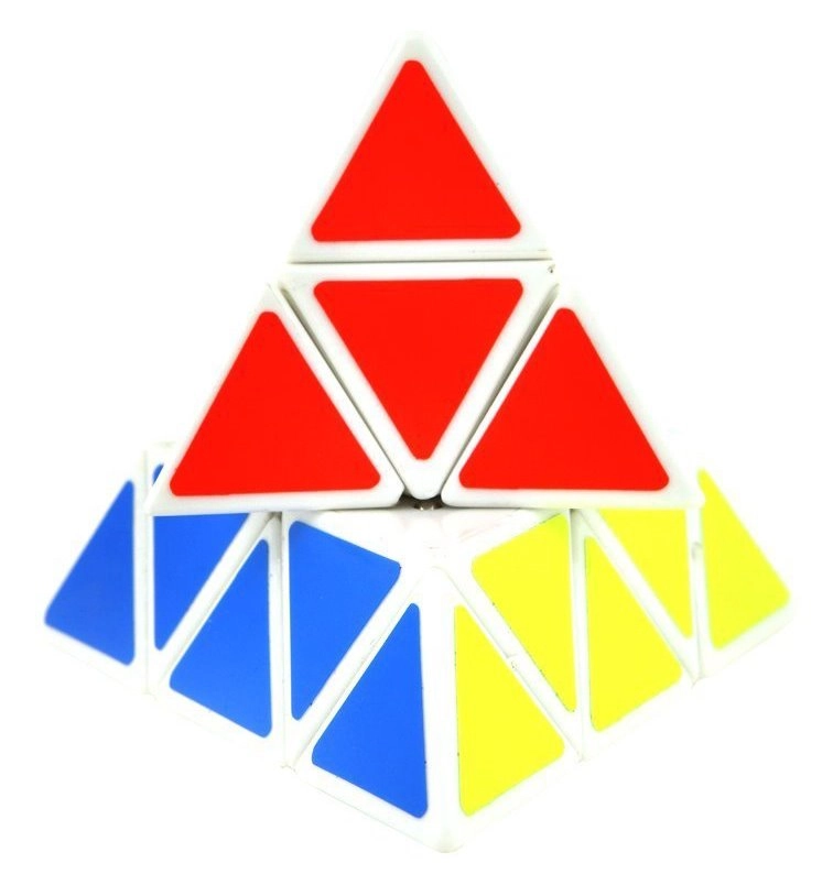 Die Spitzen der Pyramide lassen sich unabhängig drehen, was neue Zugmöglichkeiten eröffnet und das Lösen beschleunigt.