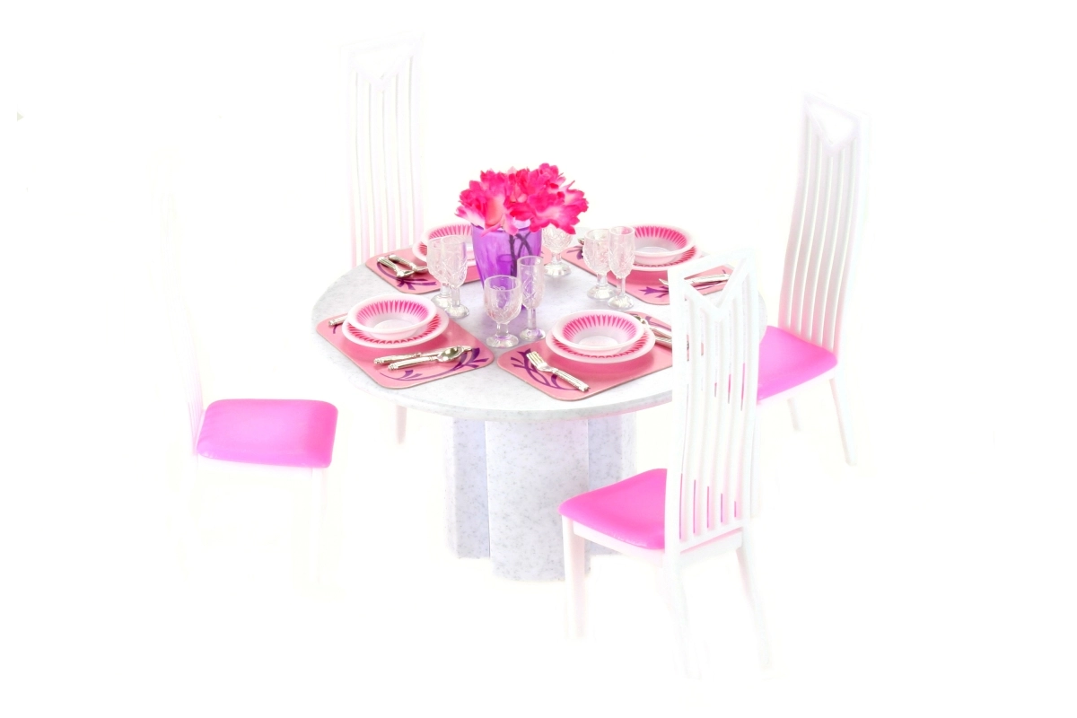 Decken Sie den perfekten Tisch für Puppen. Das Glorie Esstisch-Set bringt alles mit, was Kinder für ein Familienabendessen oder eine festliche Tafel brauchen – vom Gedeck bis zum bequemen Sitzen. Die hochwertige Kunststoffausführung sorgt für einfache Pflege und lange Lebensdauer.