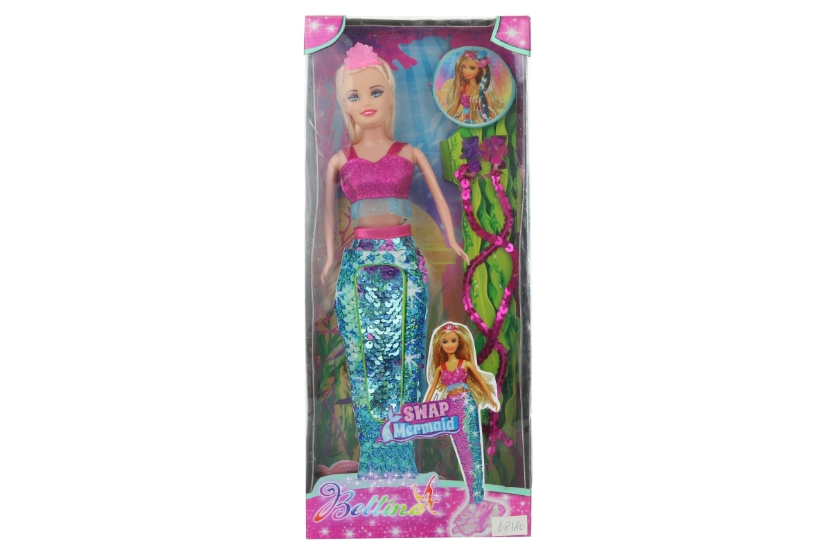 Entdecken Sie die Unterwasserwelt mit einer charmanten Meerjungfrau, die durch ihren glänzenden Pailletten-Schwanz begeistert. Die 29 cm hohe Puppe ist perfekt für den Alltag, auf Reisen und als Geschenk für kleine Märchenliebhaber.