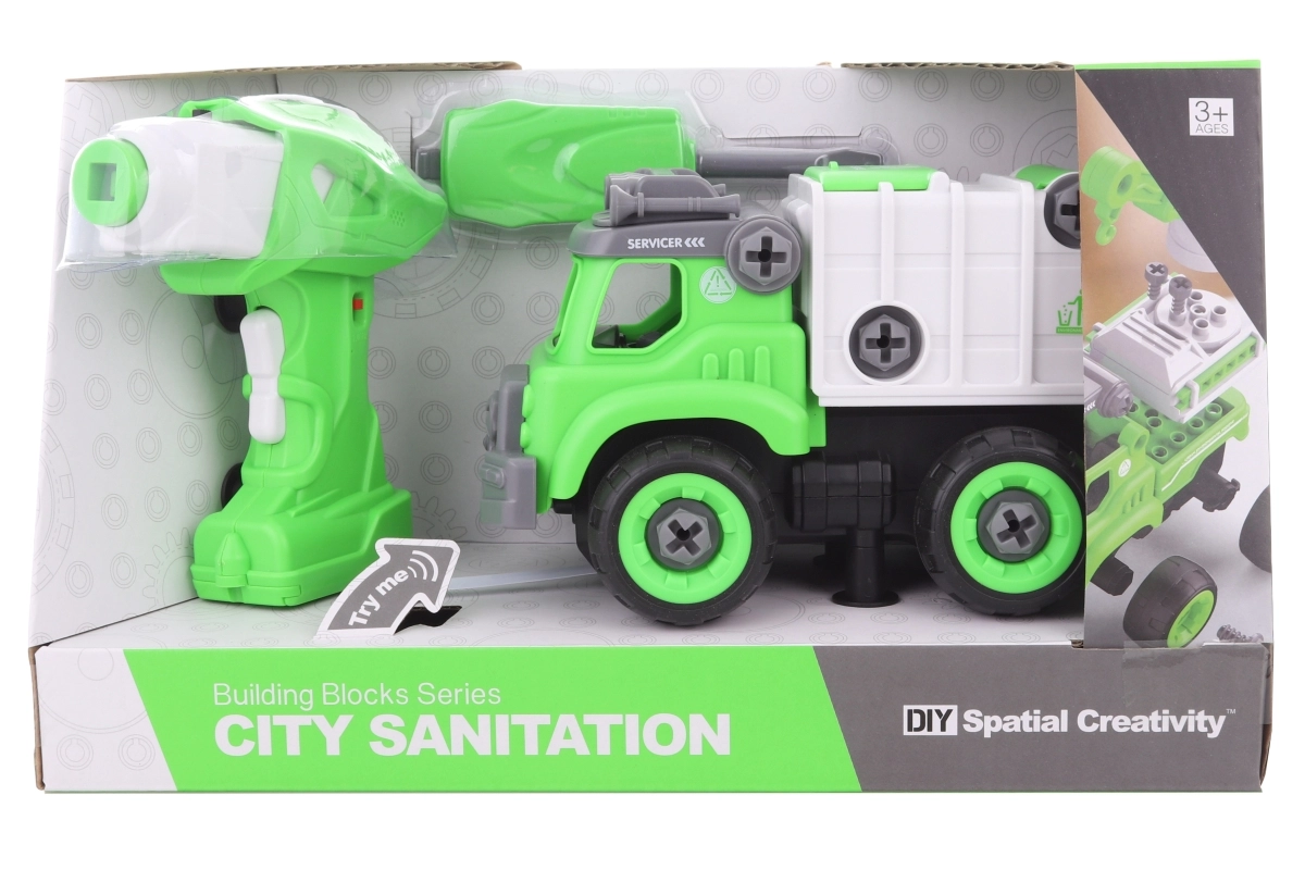 Entdecken Sie das clevere schraubbare Müllauto, das eine kreative Baukasten-Idee mit einem RC-Spielzeug verbindet. Kinder bauen das Auto selbst zusammen, setzen den Motor aus der Bohrmaschine in die Karosserie ein und starten anschließend die Fahrt mit einfacher Vorwärts-/Rückwärtssteuerung. Realistische Soundeffekte fördern das Rollenspiel und regen die Fantasie an.