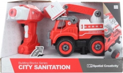 Unterhaltsames und lehrreiches Spielzeug für kleine Tüftler: ein schraubbares Feuerwehrfahrzeug, das Kinder mit dem beiliegenden Schraubendreher oder der Spielzeugbohrmaschine zusammensetzen. Nachdem der Motor aus der Bohrmaschine ins Auto eingesetzt wurde, lässt sich das Fahrzeug per Fernbedienung steuern und fährt vorwärts und rückwärts. Das Auto bietet Soundeffekte, ist geeignet ab 3 Jahren und wird mit 4× AA (nicht enthalten) und 3× AG13 (enthalten) betrieben.