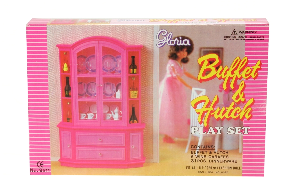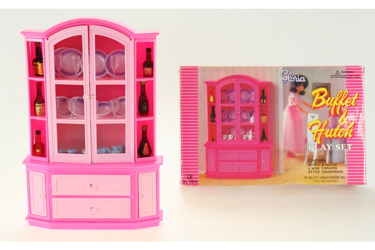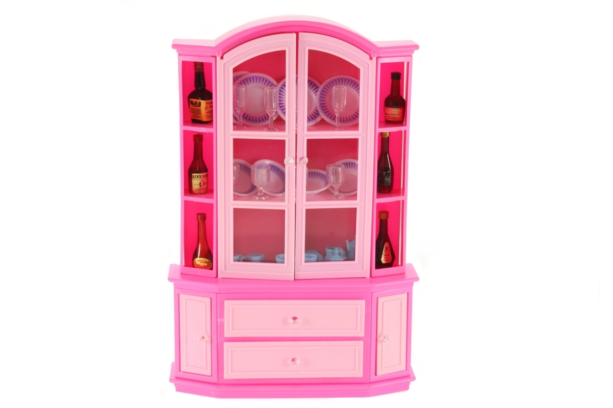 Der stilvolle Puppenschrank der Marke Glorie bietet praktische Aufbewahrung und ein attraktives Design. Er enthält 2 Schubladen, 2 Schränke mit öffnenden Türen sowie einen verglasten Bereich mit umfangreichem Zubehör: 8 Teller, 8 Gläser, 6 Flaschen und ein Teeservice. Ein idealer Zusatz für das Puppenhaus, der die kreative Spielzeit von Kindern ab 3 Jahren fördert.
