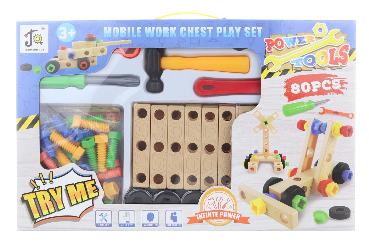 Entdecken Sie ein unterhaltsames und lehrreiches Spielzeug für kleine Tüftler: einen Schraub-Baukasten mit insgesamt 80 Teilen und kindgerechtem Werkzeug. Fördert Feinmotorik, Kreativität und technisches Denken bei Kindern ab 3 Jahren. Enthalten sind beliebte Werkzeuge wie Hammer, Schraubendreher und Schraubenschlüssel, mit denen Kinder sicher erste Konstruktionsprojekte ausprobieren können.