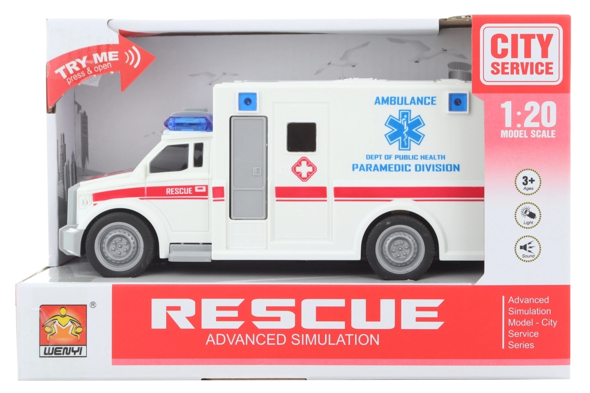 Dieses detailreich gestaltete weiße Ambulanzfahrzeug mit Batteriebetrieb bietet Kindern viel Spaß und Raum für Fantasie. Dank der Lichteffekte und der realistischen Sirenengeräusche wird jedes Spiel zur Rettungsmission.