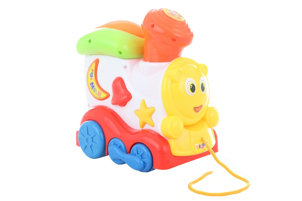 Diese bunte, pfeifende Lokomotive begeistert jedes neugierige Kind. Beim Hinterherziehen und beim Drücken des Schornsteins erzeugt sie ein Pfeifgeräusch, das die Sinneswahrnehmung fördert und zur Bewegung motiviert. Dank der kompakten Maße ist sie einfach zu handhaben und eignet sich fürs Spielen zu Hause und unterwegs.