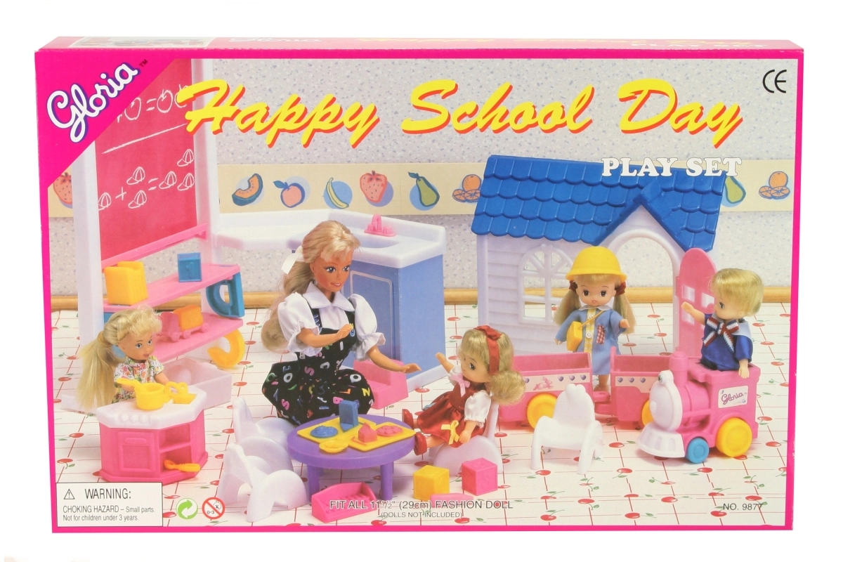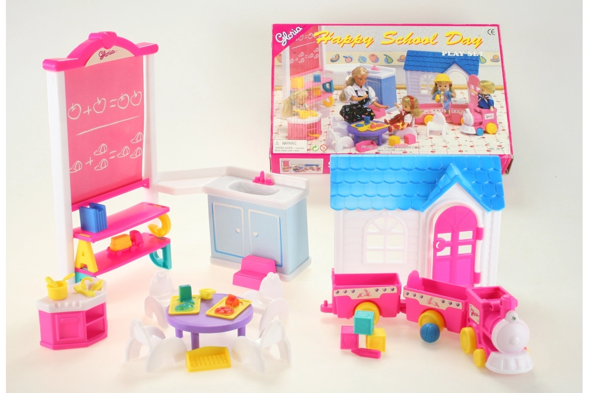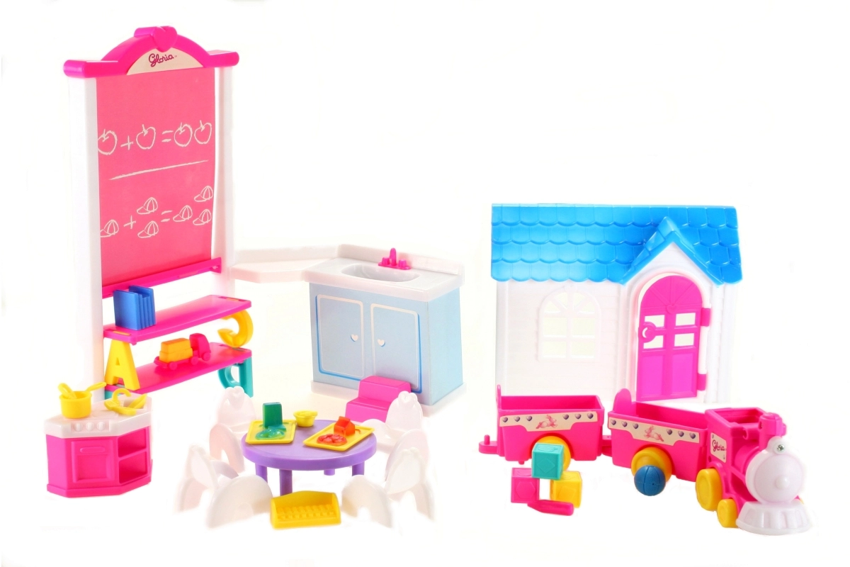 Schaffen Sie für Puppen das perfekte Umfeld mit dem reich ausgestatteten Glorie-Kindergarten-Set. Kinder lieben das Rollenspiel „Kindergarten“ mit realistischen Elementen wie der Tafel mit Regalen, dem funktionalen Waschbecken und dem Häuschen mit öffnenden Türen. Ebenfalls enthalten sind eine kleine Bahn, ein Tisch, Stühlchen sowie zahlreiche kleine Accessoires, Spielzeuge und Geschirr – alles für kreative Szenarien und täglichen Spielspaß.