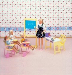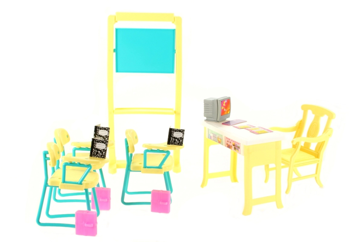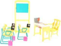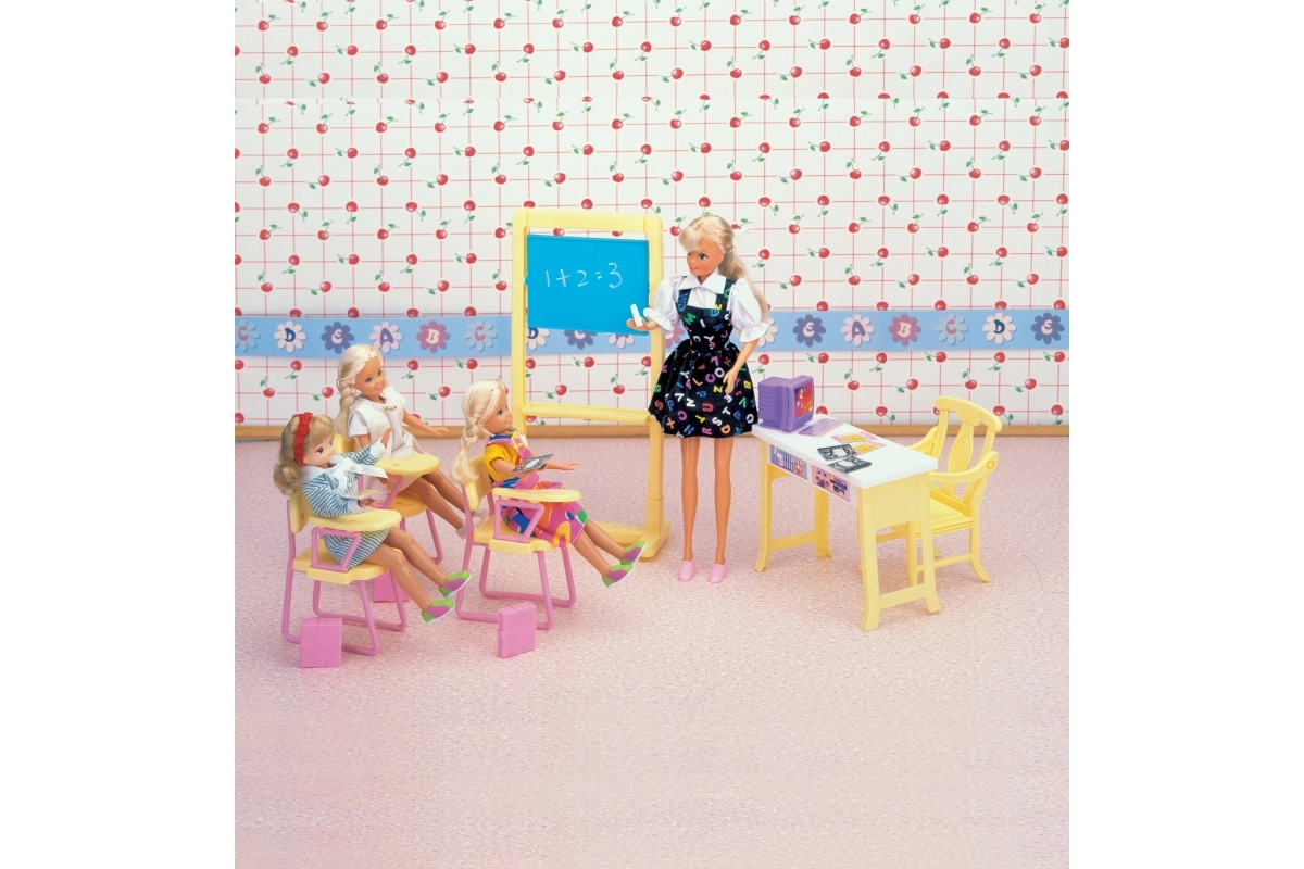 Im Lieferumfang enthalten sind eine geräumige Tafel, eine Lehrerecke mit Computer und Stühle für die Schüler. Dank der kompakten Abmessungen ist das Set mit gängigen Puppen kompatibel und lässt sich leicht verstauen.