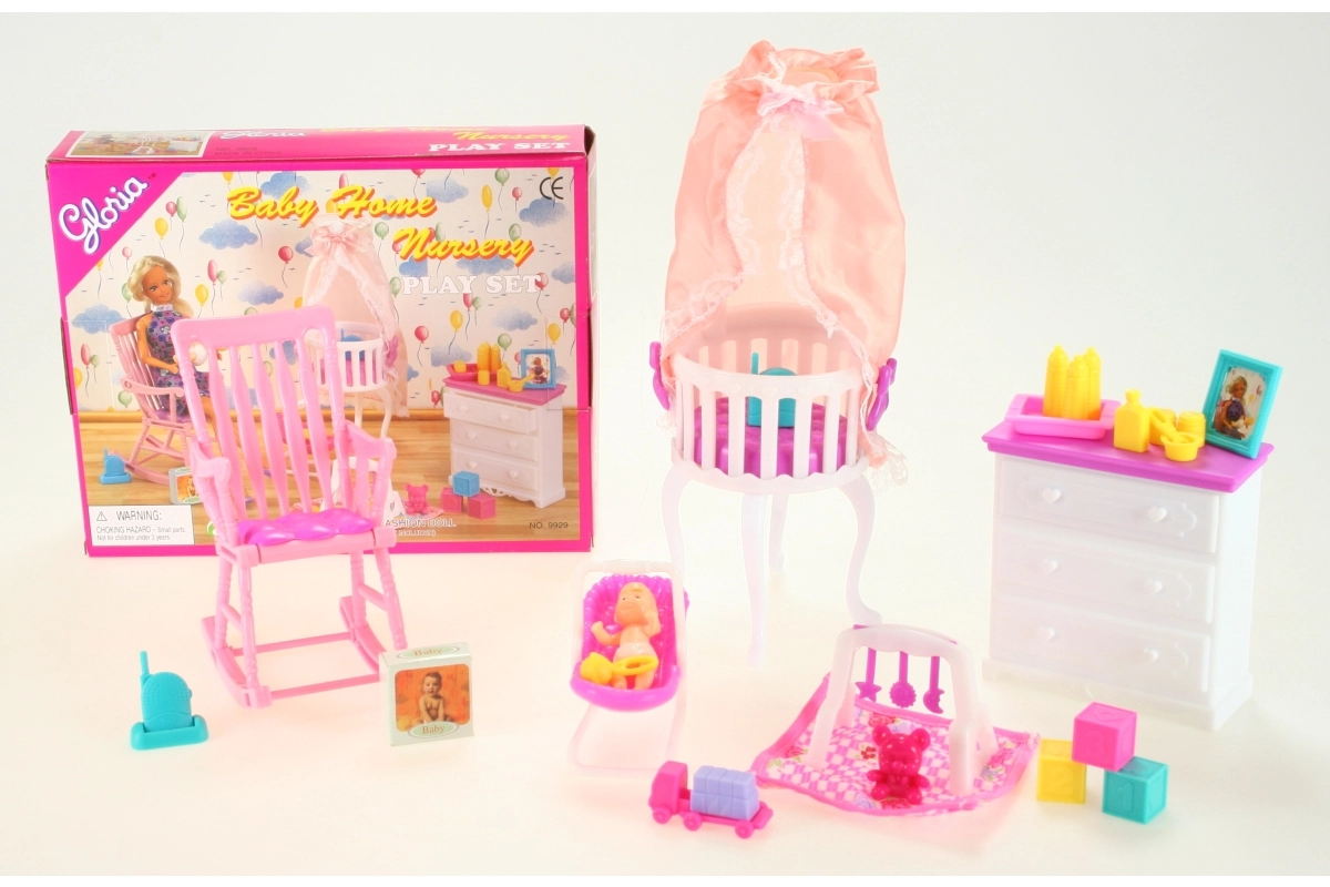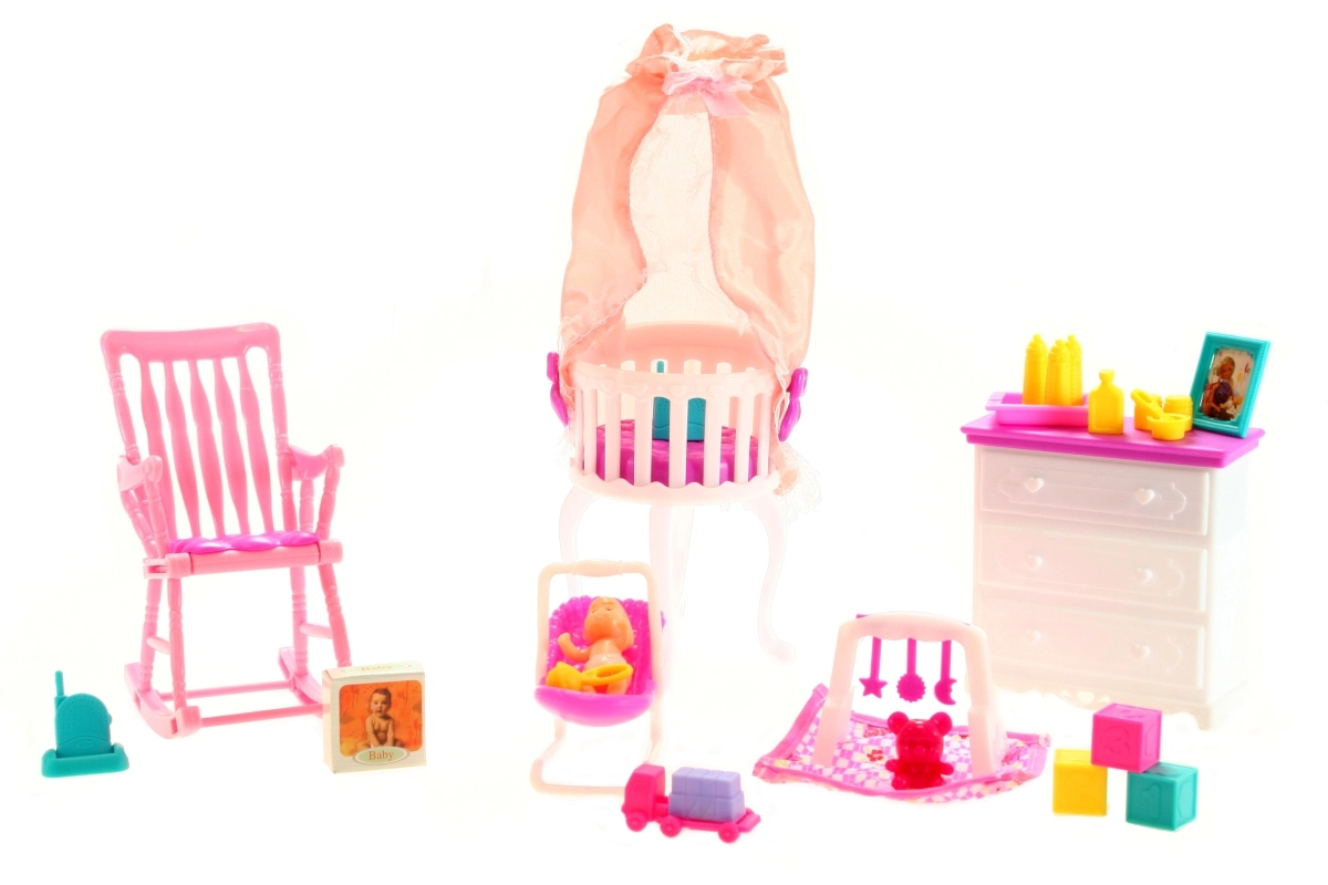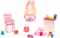 Dieses umfangreich ausgestattete Set verwandelt jedes Spiel in ein realistisches Erlebnis. Kinder können ihre eigene Babyecke einrichten, Kleinigkeiten in der Kommode verstauen, das Baby in das Himmelbett legen und im stilvollen Stuhl schaukeln. Das Set fördert kreatives Spiel, die Feinmotorik und Rollenspiele.