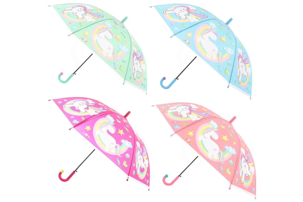 Genießen Sie Komfort und verspielten Stil mit diesem Einhorn-Regenschirm. Dank des Automatikmechanismus öffnet er sich leicht und schnell – so bleiben Sie im Handumdrehen trocken. Die leichte Konstruktion ist ideal für Reisen und Schule.