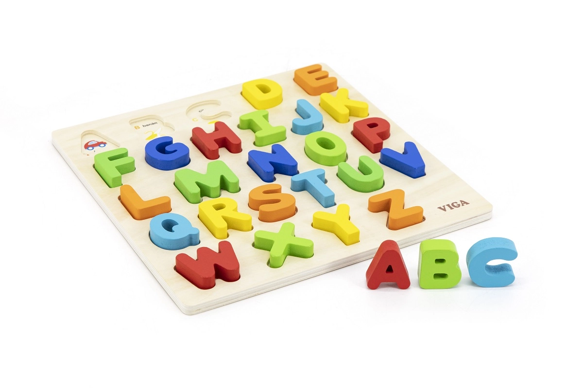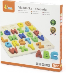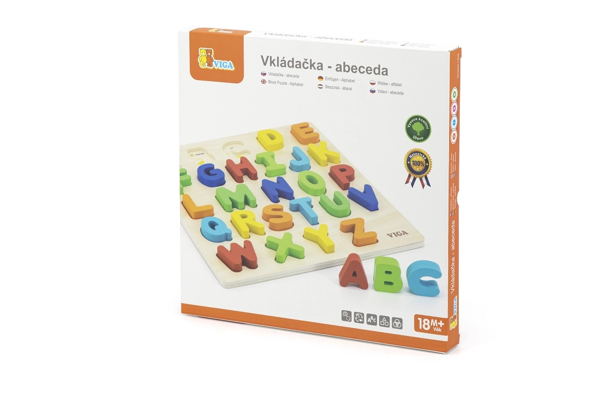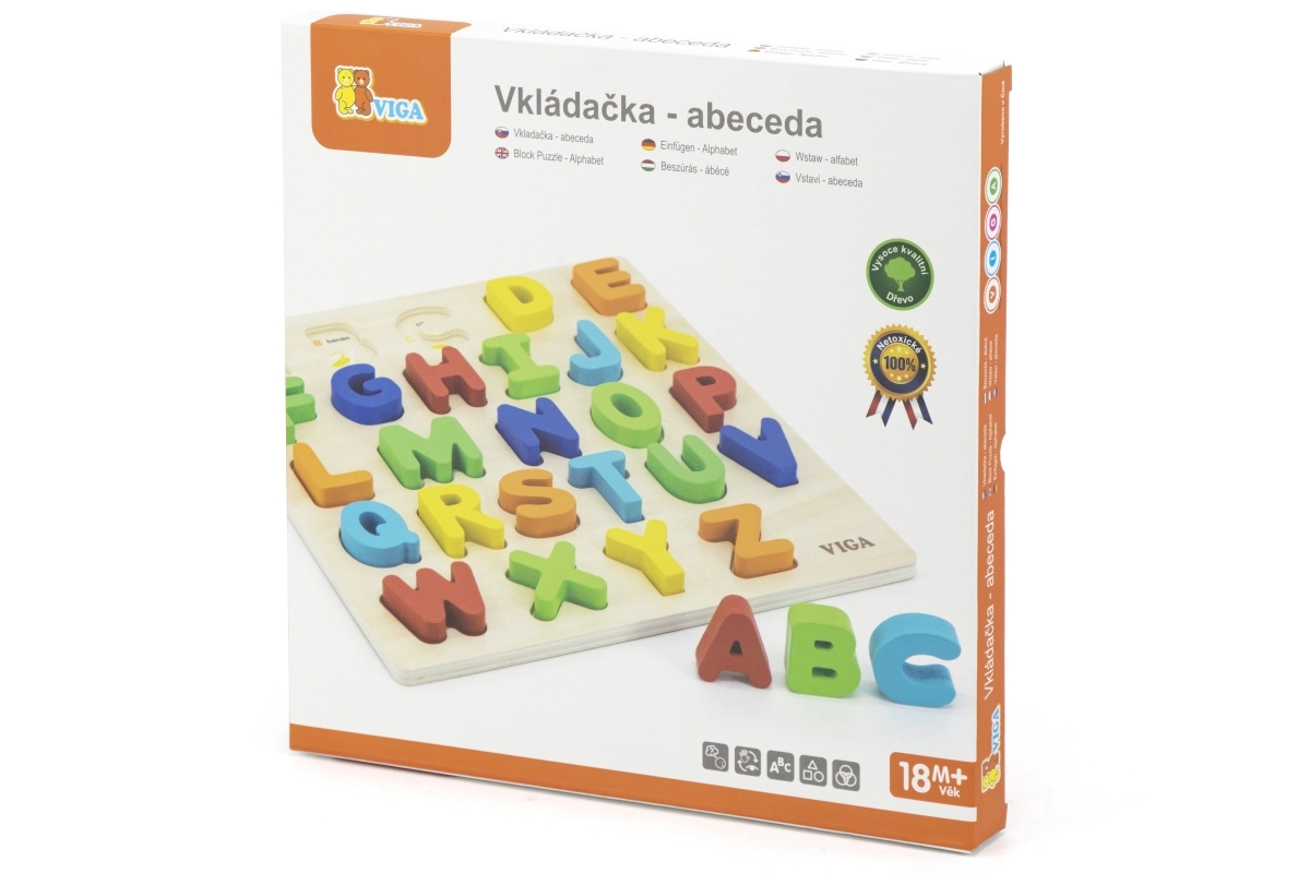 Entdecken Sie den Zauber des Lernens mit diesem wunderschönen Holzpuzzle, das insgesamt 26 Teile enthält, welche alle Buchstaben des tschechischen Alphabets darstellen.