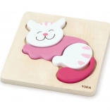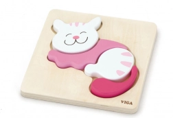 Mini-Holzpuzzle der Marke Viga sind darauf ausgelegt, die Vorstellungskraft und motorischen Fähigkeiten von Kindern zu fördern. Diese Puzzles bestehen aus vier bunten Teilen, die in die Vertiefungen auf der Holzunterlage passen. Sie sind aus kind- und umweltfreundlichen Materialien gefertigt und mit ungiftigen Farben lackiert.