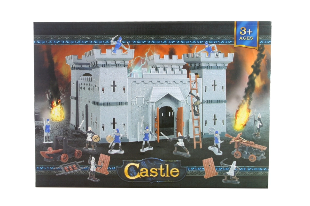 Spielset Belagerung der Burg. Enthält eine Burg mit den Maßen ca. 28 x 28 x 29 cm, Ritter und Waffen zur Belagerung der Burg. Ritter ca. 6 x 4 cm. Material: Kunststoff. Verpackungsmaße ca. 36 x 25 x 7 cm. Alter 3+.