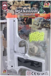 Die Kunststoff-Kugelpistole bietet einfaches und spaßiges Schießen für Kinder ab 3 Jahren. Dank des Federmechanismus ist die Bedienung leicht und es werden keine Batterien benötigt. Kompakte Abmessungen sorgen für komfortables Halten und einfaches Zielen beim Spielen zu Hause und im Freien.