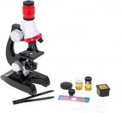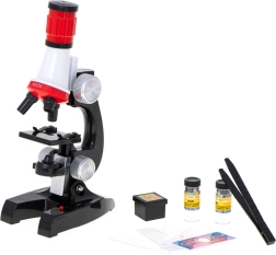 Enthält diverses Zubehör, wie eine Pinzette, einen fertigen Objektträger, vier Objektträger zur Vorbereitung eigener Proben, zwei Reagenzgläser und Aufkleber. All das ermöglicht problemloses Erkunden der Mikrowelt und fördert die kindliche Neugier und Erkenntnisfähigkeit.