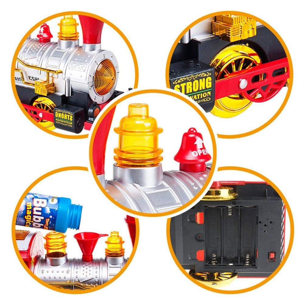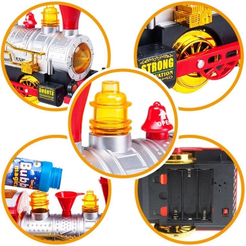 Diese Seifenblasen-Lokomotive verwandelt jede Spielminute in eine magische Show. Dank heller Lichteffekte, lustiger Melodien und der Blasen, die aus dem Schornstein strömen, ist das Spielzeug bereits ab 3 Jahren attraktiv. Der beiliegende Trichter und die Lösung erleichtern das Nachfüllen – so kann der Spaß in wenigen Sekunden beginnen.