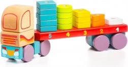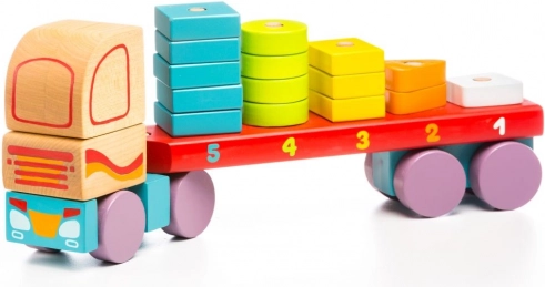 Holzpuzzle CUBIKA LKW mit geometrischen Formen ist mehr als nur ein Spielzeug. Mit 19 bunten Teilen können Kinder lernen, Formen und Farben zuzuordnen, was ihre sensorischen Fähigkeiten fördert. Jedes Teil ist so konzipiert, dass es in andere passt, und fortgeschrittene Baumeister können die Richtigkeit der gestapelten Teile anhand der Ziffern auf dem LKW-Untergestell überprüfen.