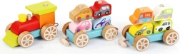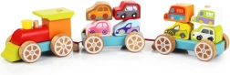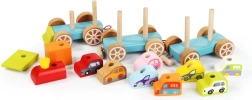 Dieses bunte Holzpuzzle enthält 14 Teile, aus denen Kinder einen Zug mit zwei Waggons und acht Autos zusammenbauen können. Sie spielen nicht nur mit den einzelnen Teilen, sondern entwickeln auch ihre senso-motorischen Fähigkeiten, logisches Denken und Kreativität.