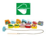 Das Set ermöglicht es Kindern, durch das Auffädeln der Blöcke auf eine Schnur Feinmotorik und Koordination zu entwickeln.