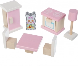 Treten Sie ein in die Welt der Fantasie mit Holzmöbeln für Puppen Küche, einem wunderschönen 10-teiligen Set, das Ihre Kinder in eine Welt unbegrenzter Kreativität entführt. Das Set enthält: