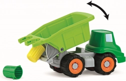 Lkw für kleine Öko-Müllarbeiter mit beweglicher Ladefläche und zwei Müllbehältern. Dank der gummierten Räder ist das Fahren sanft und leichtgängig. Hergestellt aus hochwertigen Kunststoffen.
