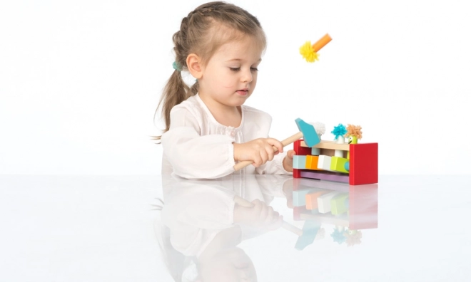 Hämmern ist eine ideale Aktivität, um die Augen–Hand-Koordination zu trainieren und den Griff zu stärken. Das Spiel fördert Konzentration und Selbstständigkeit – sicher und mit viel Spaß.