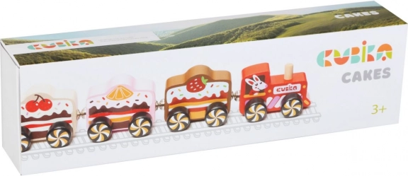 Schenken Sie Kindern Eisenbahnspaß im köstlich-süßen Design. Die CUBIKA-Holzeisenbahn „Cakes“ kombiniert das attraktive Aussehen kleiner Küchlein mit einer funktionalen magnetischen Verbindung der Waggons. Sorgfältige Verarbeitung aus europäischem Holz und eine feine Oberflächenbehandlung sorgen für Langlebigkeit und sicheres Spielen.