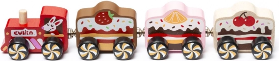Waggons im Stil von Erdbeer-, Zitronen- und Kirschkuchen regen das imaginative Spiel an und machen den Zug zu einem attraktiven Spielzeug.