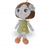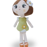Die Plüschpuppe Roma verzaubert mit ihrem zarten Look – braunes Haar mit Blumenverzierung, olivfarbenes Kleid mit Blümchen und orangefarbene Schuhe. Der feine, glatte und glänzende Plüsch fühlt sich angenehm an und lädt direkt zum Kuscheln ein. Dank der leichten Konstruktion können Kinder sie überallhin mitnehmen – ins Bettchen, auf Reisen oder zu Besuchen.