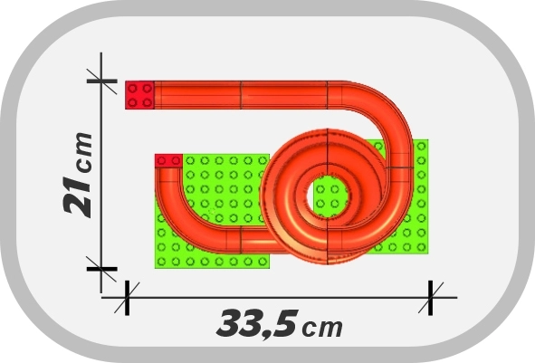 Die Bahn wird in Italien aus hochwertigen und robusten Kunststoffen hergestellt und kommt mit einer übersichtlichen Anleitung. Das aufgebaute Modell misst ungefähr 33,5 × 20,7 × 20,6 cm und passt damit auch in kleinere Kinderzimmer. Beim Zukauf aller drei Bahnen dieser Serie lässt sich eine Mega-Strecke von bis zu 540 cm erstellen.