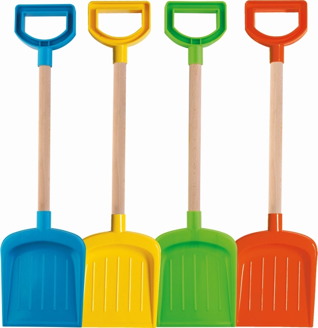 Praktische Kinderschaufel mit Holzstiel und bequemem Kunststoffgriff – ideal für Sandkasten und Garten. Hergestellt in Italien aus hochwertigen, robusten und flexiblen Kunststoffen, die auch häufige Nutzung in Kitas aushalten. Länge 53 cm, geeignet ab 12 Monaten.