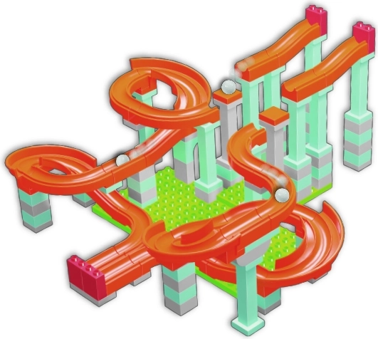 Bauen Sie 2 verschiedene Strecken mit unterschiedlichen Abmessungen und Verläufen. Kinder üben Planung, Testen und Optimieren ihrer eigenen Bahn.