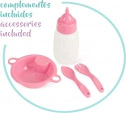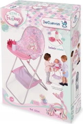 Enthalten sind ein Ess-Tablett mit niedlichem Zubehör (Fläschchen, Besteck) sowie ein praktischer Aufbewahrungskorb im unteren Teil. Die Maße 65 × 32 × 42 cm (H × B × T) und die Höhe bis zum Tablett von 50 cm sorgen für eine bequeme Nutzung für Kinder. Die hochwertige Verarbeitung der Marke DeCuevas überzeugt durch Langlebigkeit und sichere Ausführung.