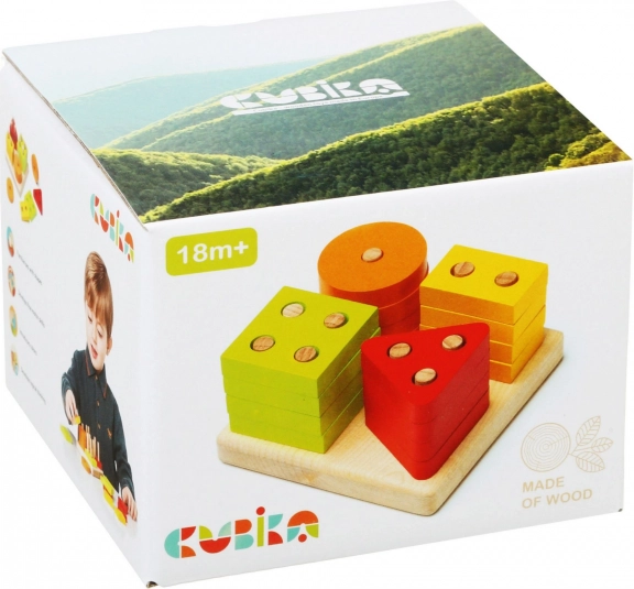 Das didaktische Kinderspielzeug CUBIKA „Wir sortieren Formen“ enthält 16 farbige, gelochte geometrische Teile und eine stabile quadratische Basis mit Stiften. Kinder entdecken spielerisch Unterschiede zwischen Formen und Farben, trainieren den Griff und die Auge-Hand-Koordination und entwickeln Fantasie sowie Geduld. Die sorgfältige Verarbeitung aus Ahorn- und Buchenholz und die langlebigen, gesundheitlich unbedenklichen, wasserbasierten Farben gewährleisten eine lange Lebensdauer und sicheres Spielen.