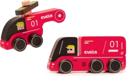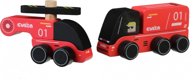 Schenken Sie Kindern kreatives Spiel mit dem Holzset CUBIKA Feuerwehr. Das Set besteht aus einem Feuerwehrauto und einem Hubschrauber aus erstklassigem Ahorn- und Buchenholz, lackiert mit wasserbasierten, geruchsarmen Farben. Dank abgerundeter Kanten und sorgfältiger Verarbeitung liegen die Teile auch in kleinen Händen gut und fördern Sensorik und Motorik, logisches Denken und Kreativität.