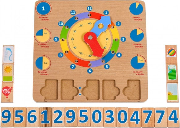 Das hölzerne Lernbrett von Lucy & Leo hilft Kindern auf spielerische Weise zu verstehen, wie Zeit funktioniert. Es enthält große, farbige Zeiger, Einlegeblöcke mit Zahlen sowie Bildblöcke von Aktivitäten, sodass Kinder leicht lernen, Uhrzeiten und Zeitintervalle zu erkennen. Ideal für Vorschulkinder und jüngere Schulkinder, die beim Spielen ihr logisches Denken, die Feinmotorik und die Zeitorientierung entwickeln.
