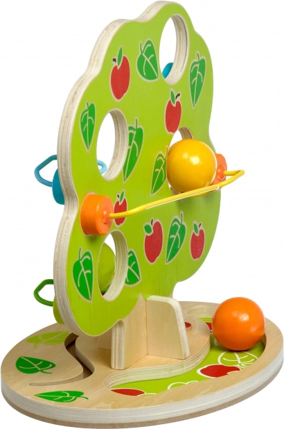 Die designstarke Kugelbahn in Baumform bietet mehrere kaskadenförmige Schienen an den Seiten. Einfach eine der glatten, großen Holzkugeln oben auflegen und zusehen, wie sie nach unten rollen, ein rhythmisches „Klicken“ erzeugen und am Fuß des Baumes zum Stehen kommen. Das Spielzeug ist ideal für aktive Kinder, die Bewegung, Klänge und das Entdecken von Ursache und Wirkung lieben.