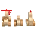 Die Kombination aus natürlichem Holz und farbigen Details lädt zum Spielen ein und hilft zugleich beim Unterscheiden von Formen und Teilen. Glatte Kanten sind sanft zu kleinen Händen.
