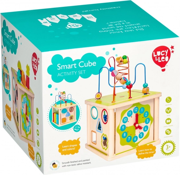Holzwürfel Motorik 5-in-1 LUCY & LEO mit Uhr
