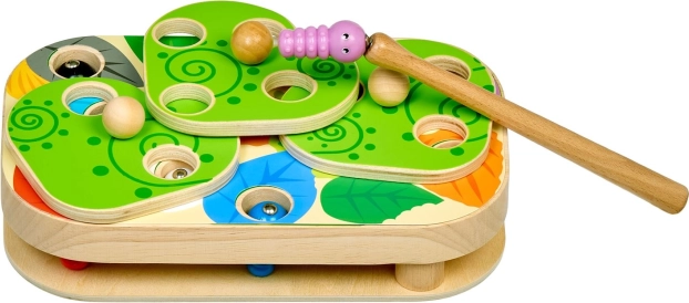 Das unterhaltsame und lehrreiche Spiel Lucy & Leo Raupenfangen fördert Feinmotorik, logisches Denken und die Hand-Auge-Koordination. Mit einem magnetischen Stäbchen fangen Kinder bunte Raupen und setzen sie in die Öffnungen der Holzplatte. Dank auswechselbarer Vorlagen und drehbarer Blätter lassen sich verschiedene Schwierigkeitsstufen ausprobieren.