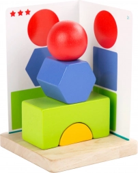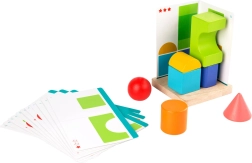 Dieses hölzerne Lernspielzeug hilft Kindern, grundlegende geometrische Prinzipien zu verstehen und verbessert ihre Problemlösefähigkeiten. Dank der zweiseitigen Vorlagenkarten mit unterschiedlichen Schwierigkeitsgraden legen Kinder farbige Formen auf die Holzbasis, sodass sie der Vorlage entsprechen. Eine einfache Regel – nach der Schablone legen – sorgt für viel sinnvollen Spielspaß.
