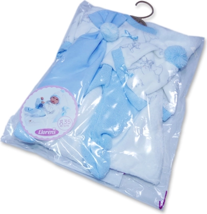 Dieses hochwertige Set der Marke Llorens macht die Puppenpflege zu einem realistischen und zarten Erlebnis. Weiche Strickstoffe und feine Details sorgen für Komfort der Puppe und leichtes Anziehen. Das Set ist für New Born Puppen in der Größe 35–36 cm konzipiert und passt hervorragend zu weiterem Zubehör.