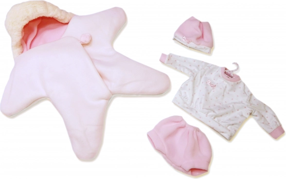 Gönnen Sie Ihrer Puppe außergewöhnlichen Komfort und Stil mit diesem 3-teiligen Outfit von Llorens. Der Star des Sets ist der wendbare Fleece-Overall in Sternform, der wunderbar weich, wärmend und perfekt zum Kuscheln sowie für Winterspaziergänge mit der Puppe geeignet ist. Dank der universellen Größe passt er ideal für NEW BORN Puppen in 40–42 cm.