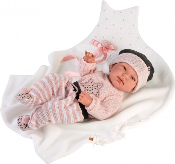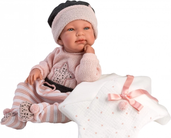 Llorens Outfit für Puppe New Born 43–44 cm, 3-teiliges Set mit Decke