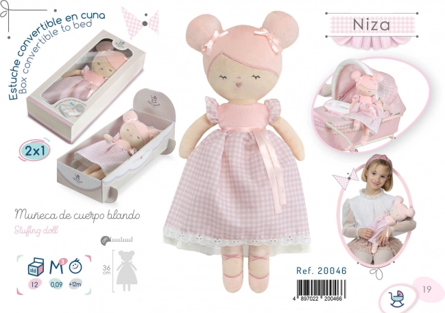 Plüschpuppe Niza 36 cm mit Wiege