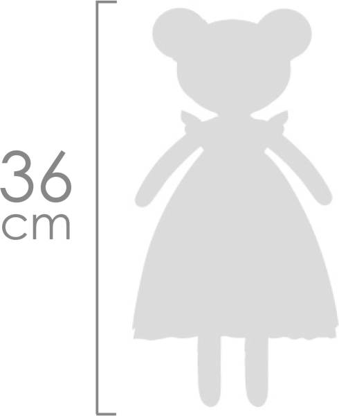 Die Puppe ist 36 cm groß, außergewöhnlich leicht und angenehm zu halten und zu kuscheln. Die Pflege ist einfach – Handwäsche bei 30 °C genügt. Die Kombination aus hochwertigen Materialien und zeitlosem spanischem Design macht sie zum idealen Geschenk für kleine Prinzessinnen.